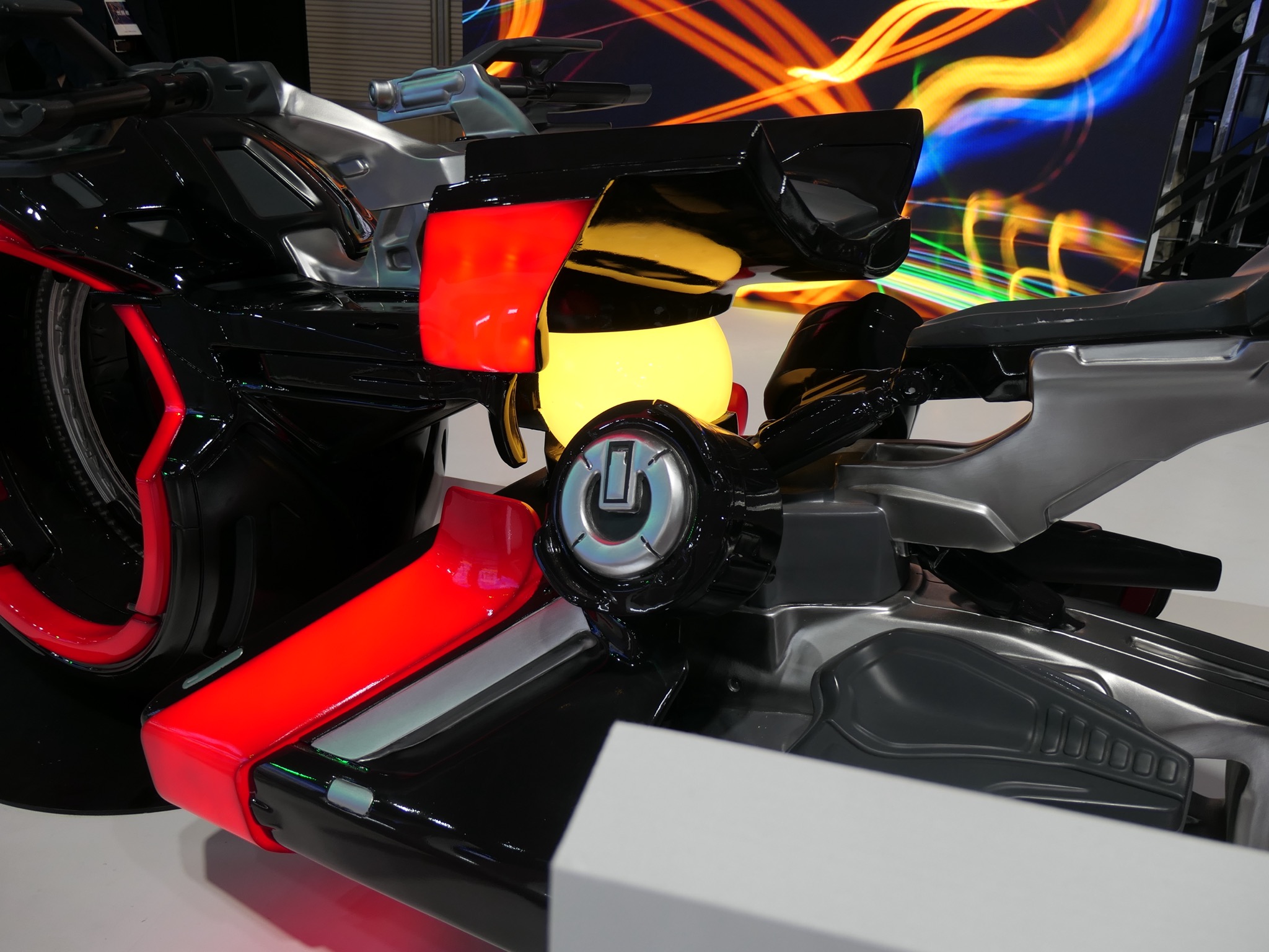 今回、なんとジャパンモビリティショーの会場でこのライトサイクルの実物を間近に観られるというので、折しも今年開業30周年を迎えているゆりかもめに乗って、東京ビッグサイトまで足を運んできた。その車体の精悍さと美しさを写真でご確認いただきたい。