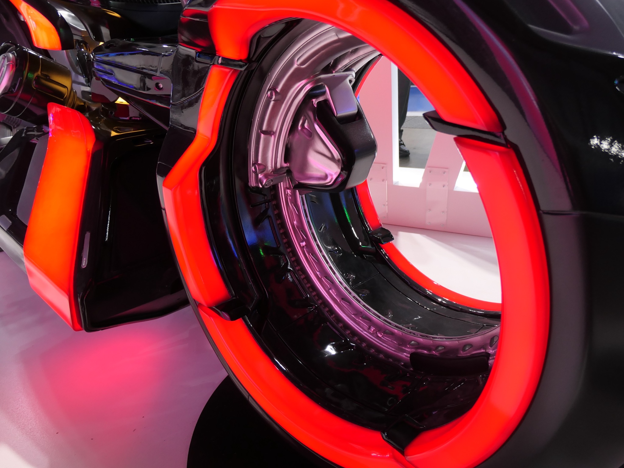 今回、ジャパンモビリティショー2025の会場に映画『トロン:アレス』に登場するライトサイクルを持ち込んだのは、同ショーに初出展となる日本企業のQuantum Mesh(クォンタムメッシュ)社。大変に心躍るものを見せてもらい、せっかくなのでブース内も見学させてもらった(写真6)。
