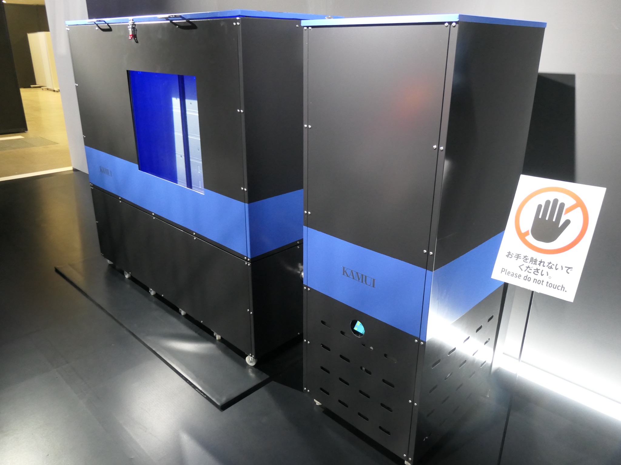 2021年創業のQuantum Mesh社は「AIoT時代のデータ経済を牽引する」ことをミッションに掲げる。ここが『トロン:アレス』の世界観にやや重なるか。ブースに巨大な実機を持ち込んでまで紹介されていたのが、AIデータセンター向け液浸(えきしん)冷却システムの「KAMUI(カムイ)」(写真7)。同社独自開発によるシステムの仕組みや意義について、同社の共同創業者 兼 取締役の安田 光德(やすだ・みつのり)氏が説明してくれた。