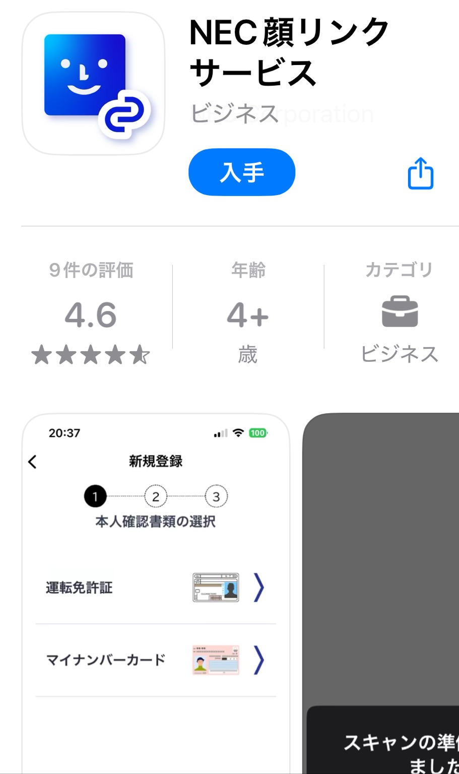 画面2 「NEC顔リンク」アプリのダウンロード画面
