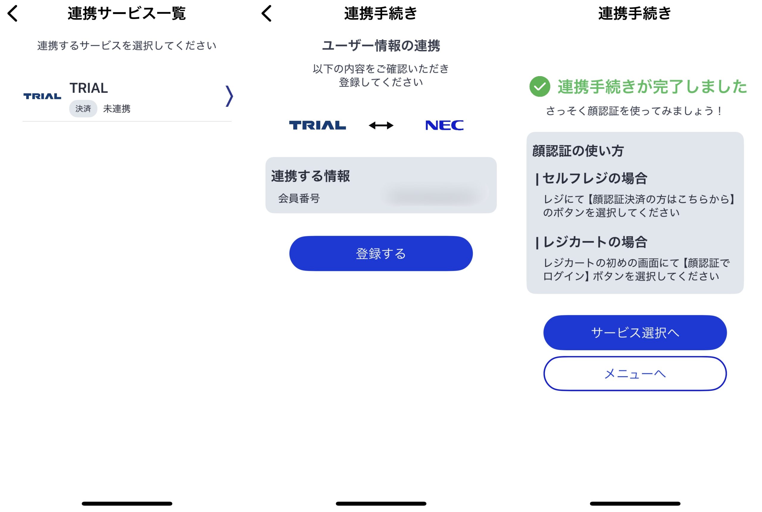 TRIALのスマホ決済アプリに顔情報を紐付ける