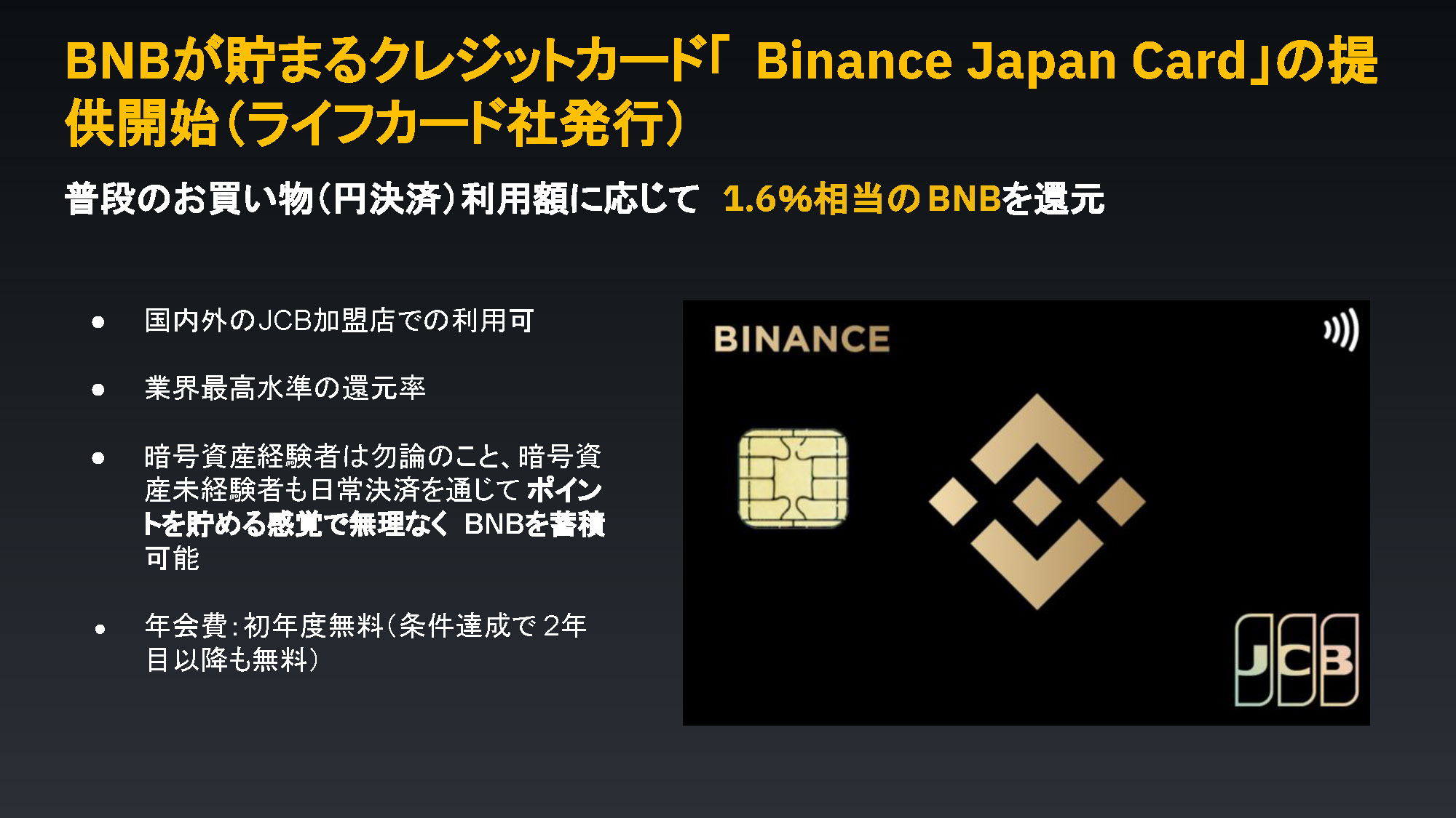 1.6%分の暗号資産BNBを還元、バイナンス・ジャパンがライフカードと提携クレカ発行