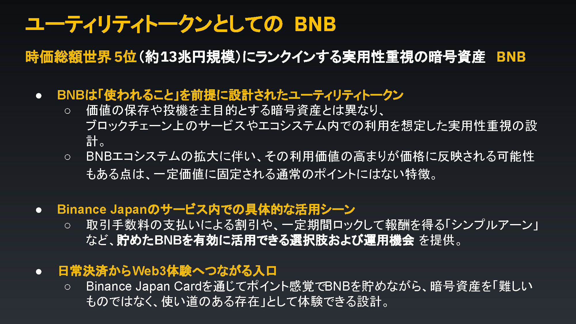 画面3 (2026年1月13日「Binance Japan Cardリリース発表会」説明資料より)