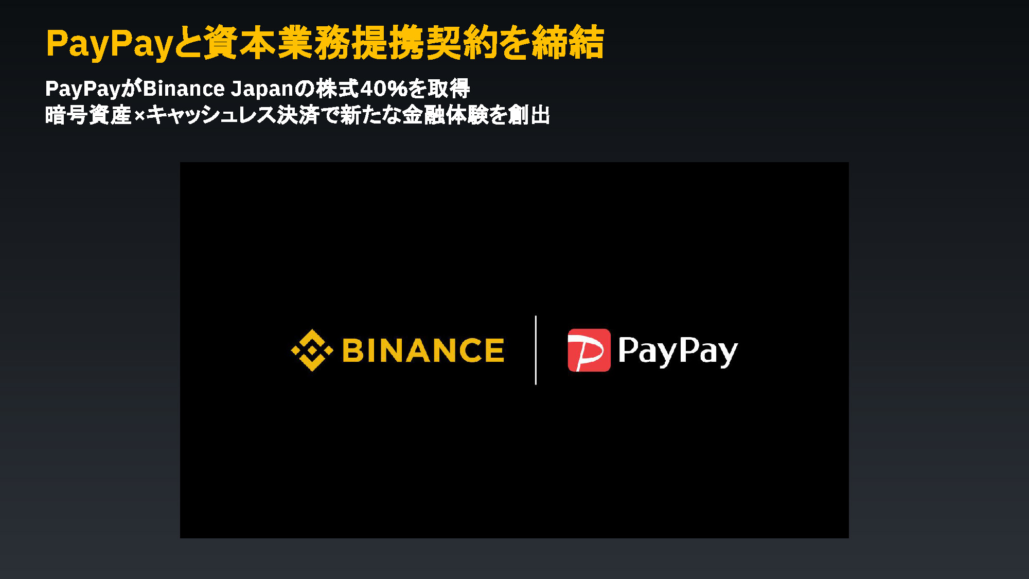 ところでBinance Japanは昨年、2025年10月にPayPayと資本業務提携を行い、PayPayがBinannce Japanの株式の40%を取得している。この一環で、11月からはBinance Japanにアカウントを持っているユーザーであれば、PayPayマネーかPayPayポイントを使って直接、暗号資産が購入できるサービスを提供している(画面4)