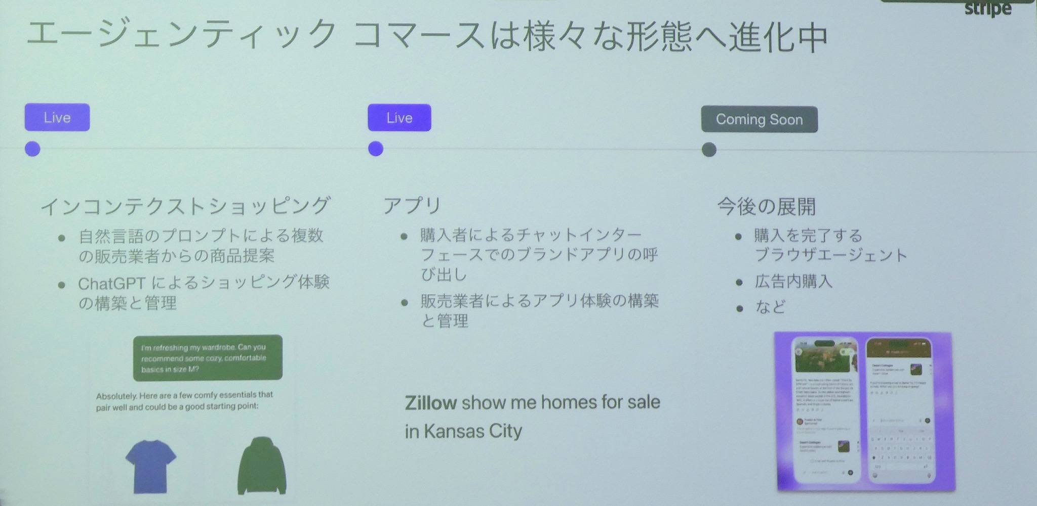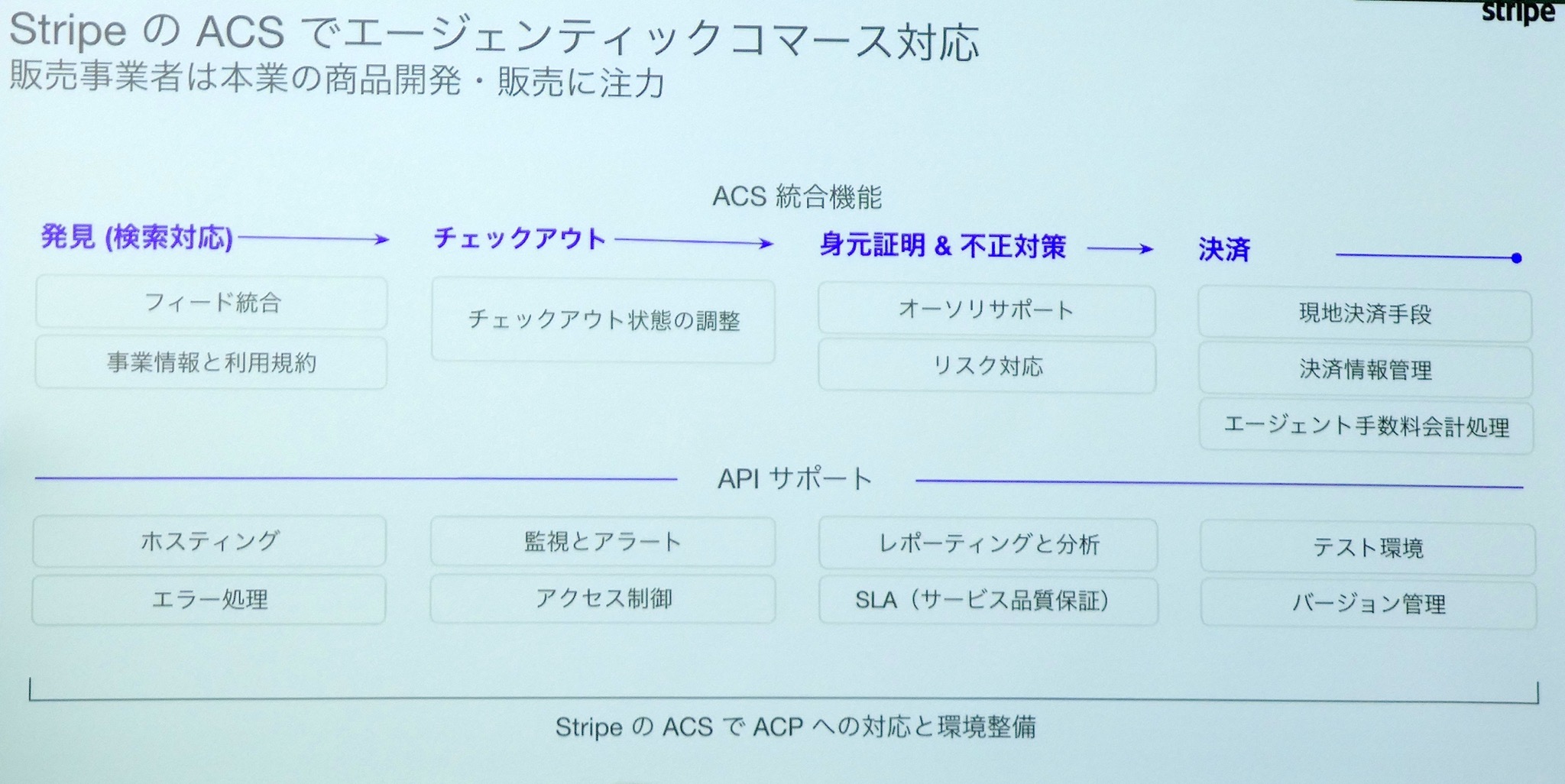 Stripeが生成AIを利用した「エージェンティックコマース」への対応を急いでいる。従来のEコマースは、販売する側も購入する側も人間だったが、ある程度自律的な動作も可能になってきたAIエージェントが、人間の意思を「代理」する場面が商取引においても起こりつつある。その際の課題や対応サービスの最新状況について、日本法人のストライプジャパンが説明した。