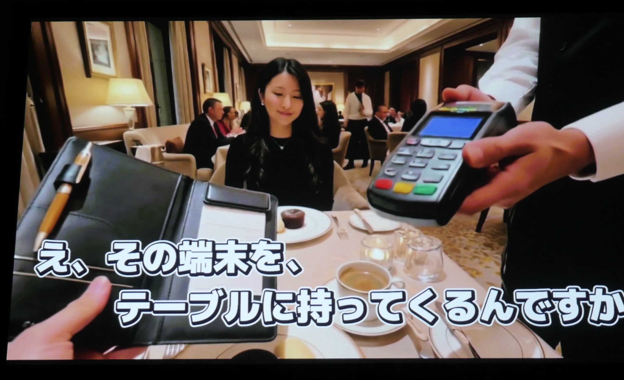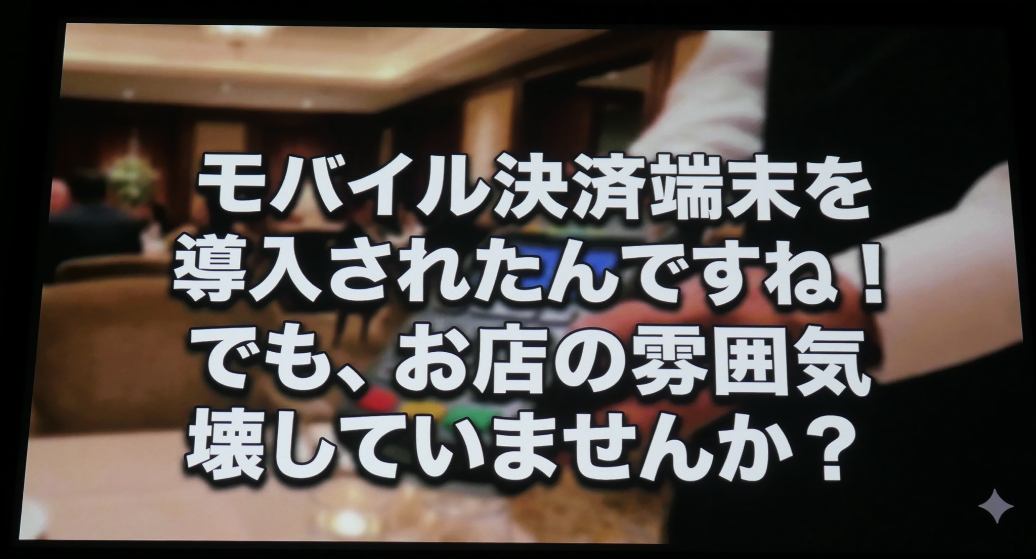 (中略)この業界ルールの変更が少なからず飲食店の店頭に影響を与えております。特にこれを機会に端末を入れ替えた店舗の60パーセントでは、導入した新しい端末が店舗の雰囲気に合っていないと回答しております。結果、お店の方が、自分のお店の雰囲気に合わないと感じている無骨な決済端末がテーブルに運ばれてきており(写真1、2)、お客様の会話を遮ったり、お支払いのためだけにカウンターに足を運んでいただいたりと(写真3)、今のテーブル決済の状況は決して美しくないと私たちは考えております。そこでDXの力を使ってエレガントな『サイン・オン・ペーパー』を再現し、再び美しいテーブル決済を取り戻したいと考えました。